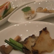 合鴨くわ焼と吉野焼、床節舞茸と焼イチジクには 胸肉のレバーっぽい部分に・・・